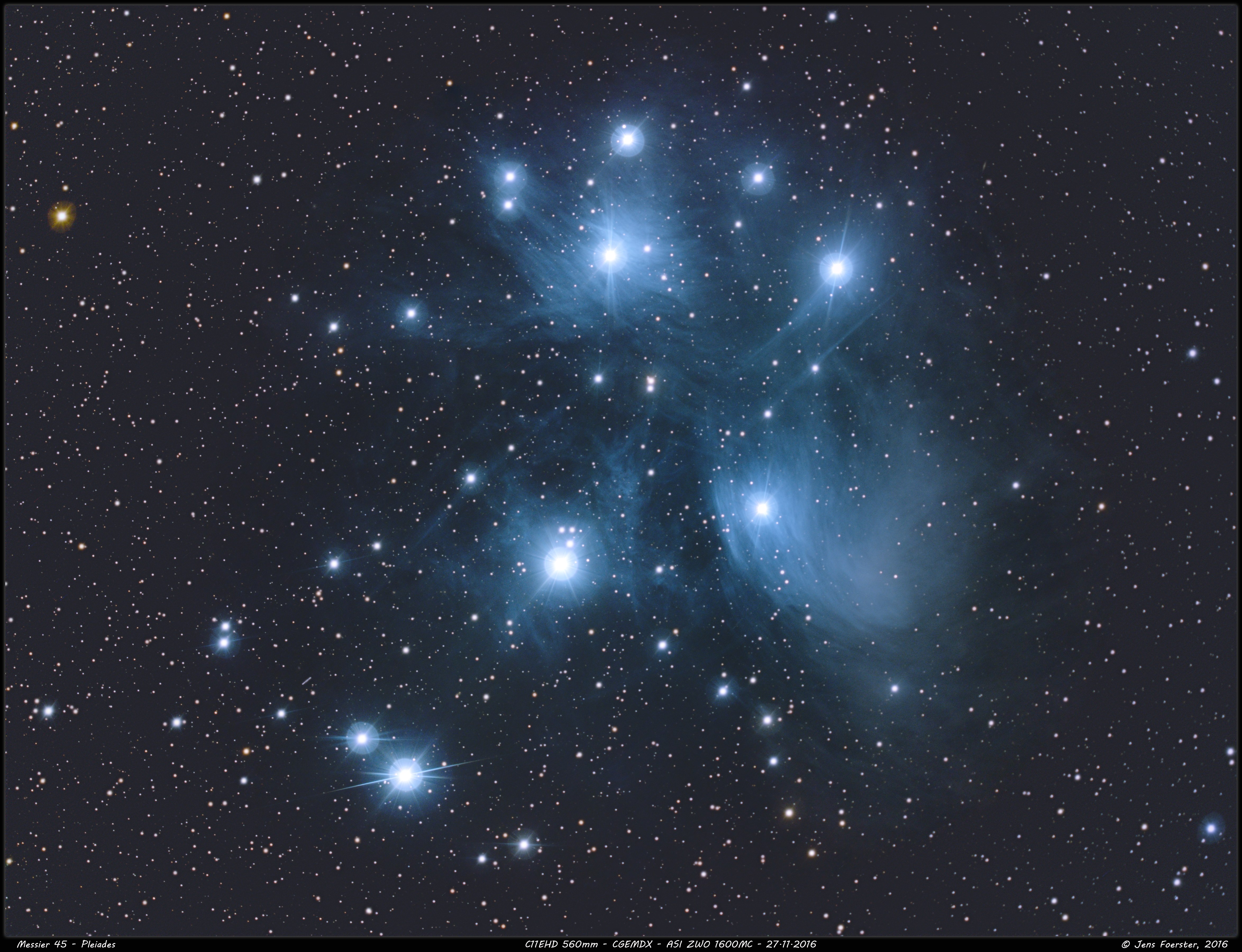 M 45 Pleiades with Minor Planet Tatjana 2016-11-27 90 mal 60 Sekunden / ASI ZWO 1600MC / Hyperstar F2 560mm