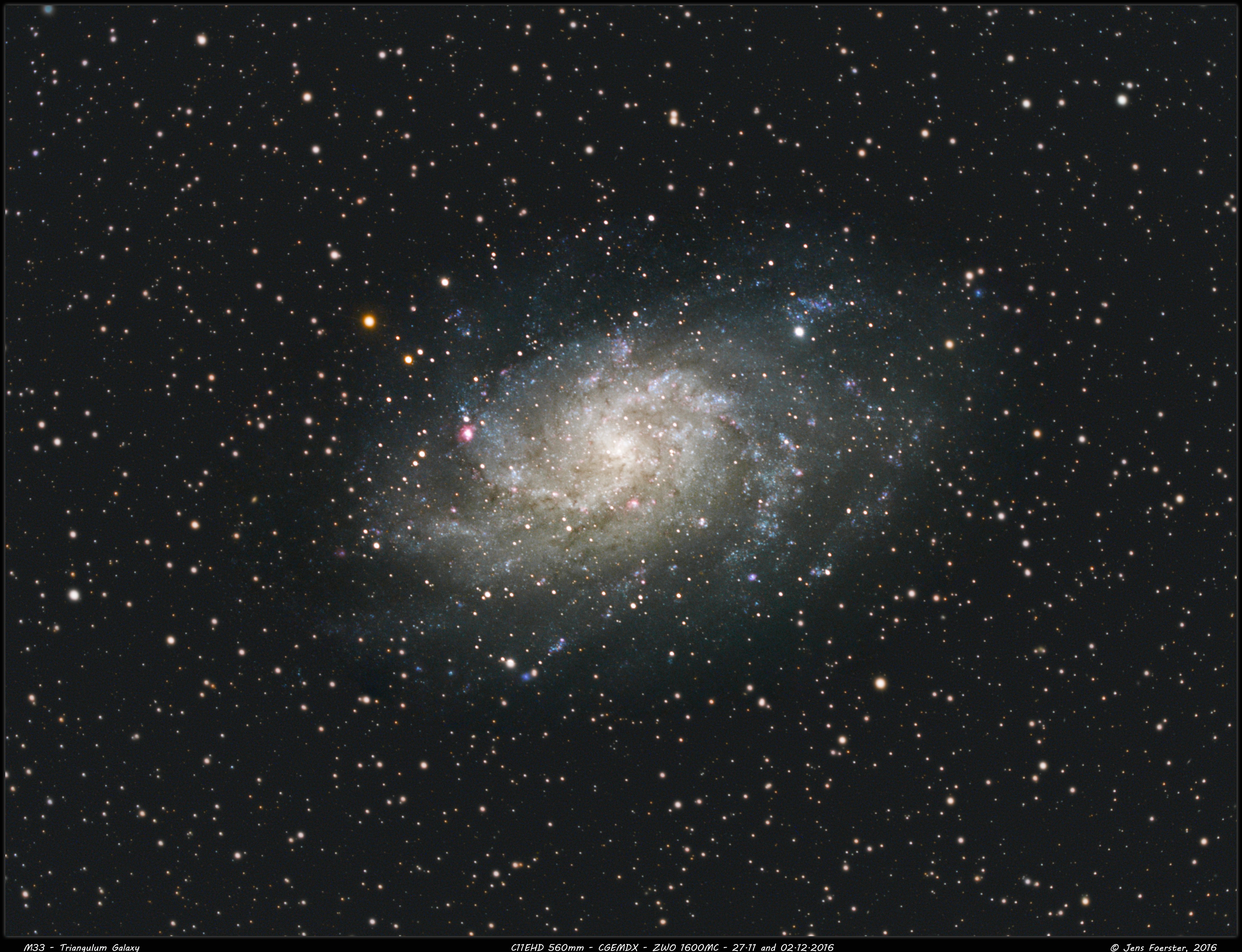 M 33 2016-11-27 und 12-02 3 Stunden 30 Minuten / ASI ZWO 1600MC / Hyperstar F2 560mm
